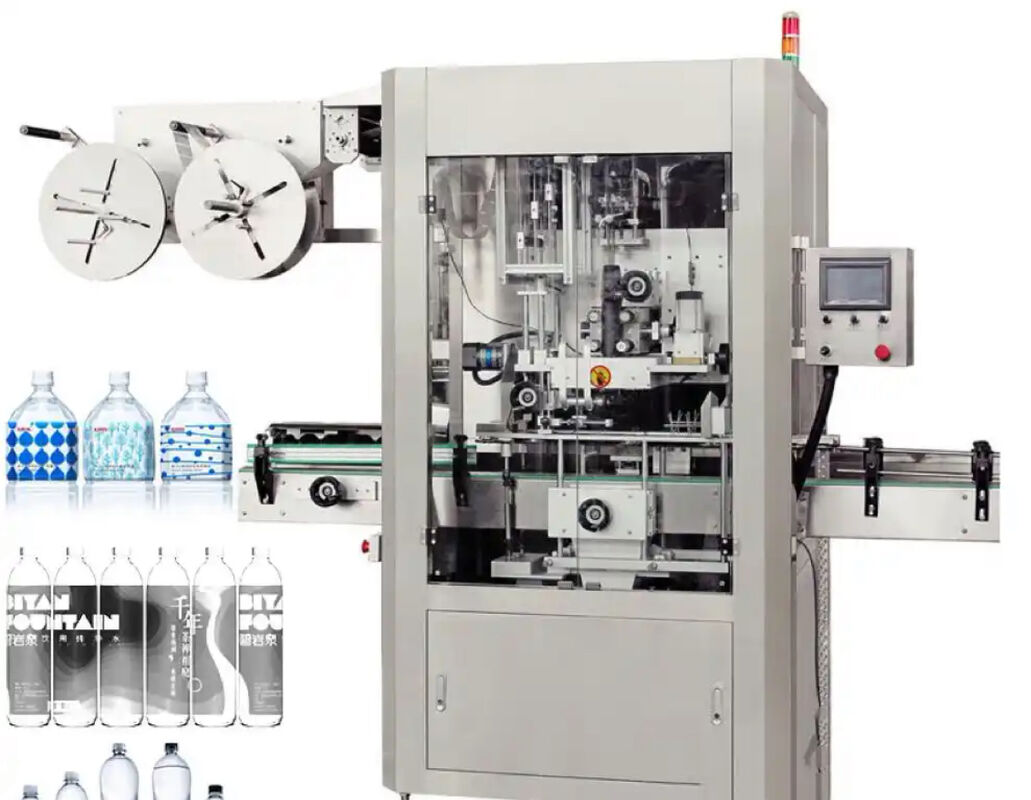 Máquina automática de encosto de mangas de garrafas de água de plástico com 14000pcs/hora Velocidade e sistema de alimentação automática para indústrias de alimentos e bebidas